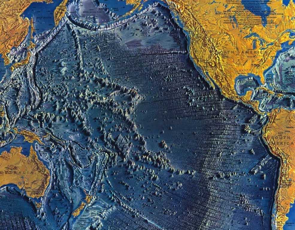 Особенности донного рельефа Тихого океана связаны со спецификой образования земной коры. Во времена юрского периода было сформировано несколько тектонических плит с корой океанического типа: