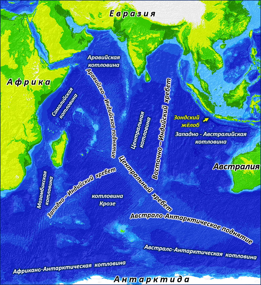 - Чилийское, Восточно-Тихоокеанское и Южно-Тихоокеанское поднятия;