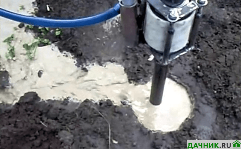 Возникновение шума — сигнал, что внутрь погруженной трубы необходимо заливать воду. Если она из трубы уходит быстро, скважину нужно углубить на 30 см. При медленном впитывании воды необходимо углубление еще на 50-60 см.