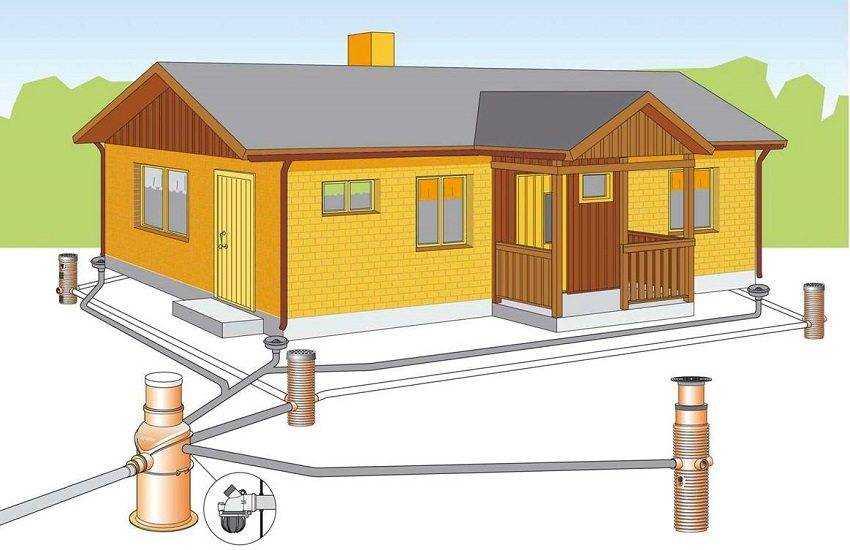 Если на территории уже проложена система дренажа, то ливневую канализацию в частном доме располагают выше этой системы.