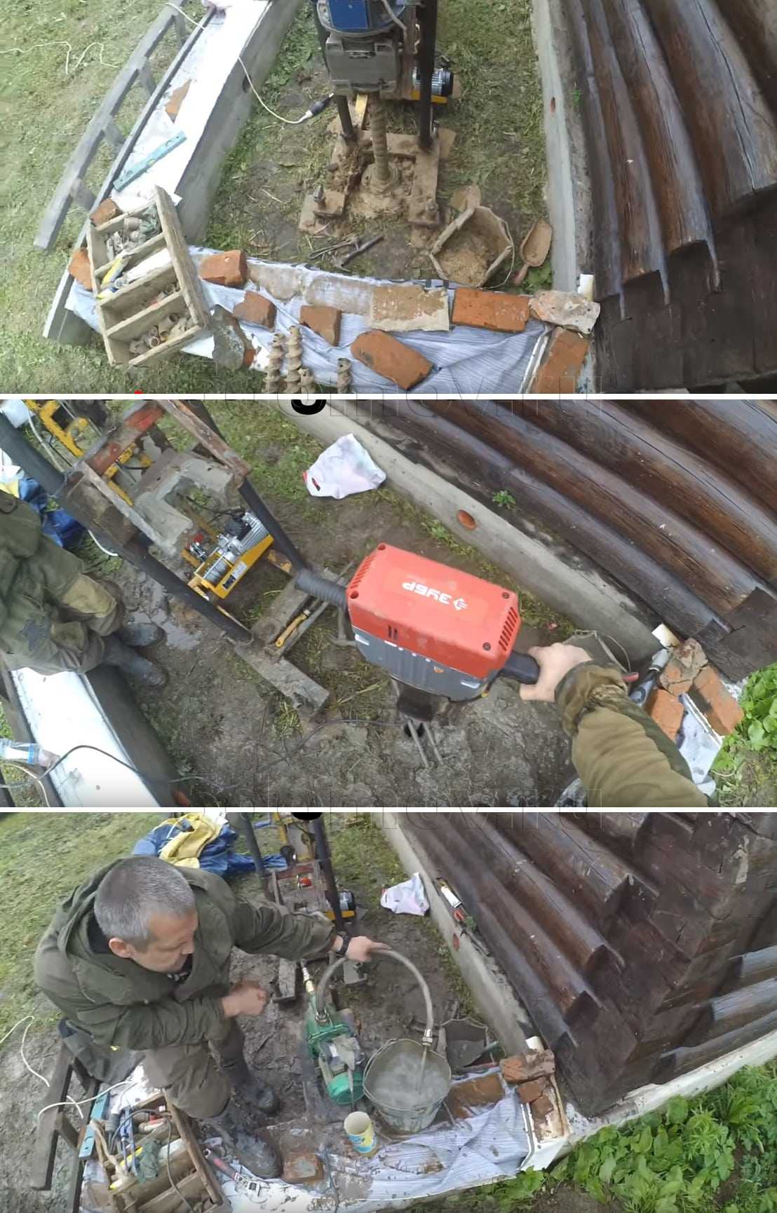 - образование вертикальной скважины в земле посредством поочередного разрушения почвенных пластов;