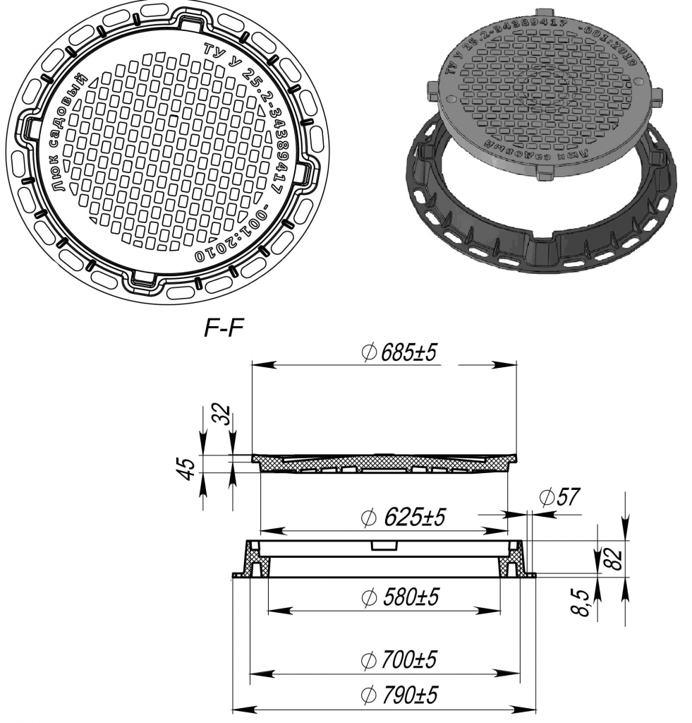 | Люки квадратные (больше 2 тонн) | 640х640 | 600х600 |