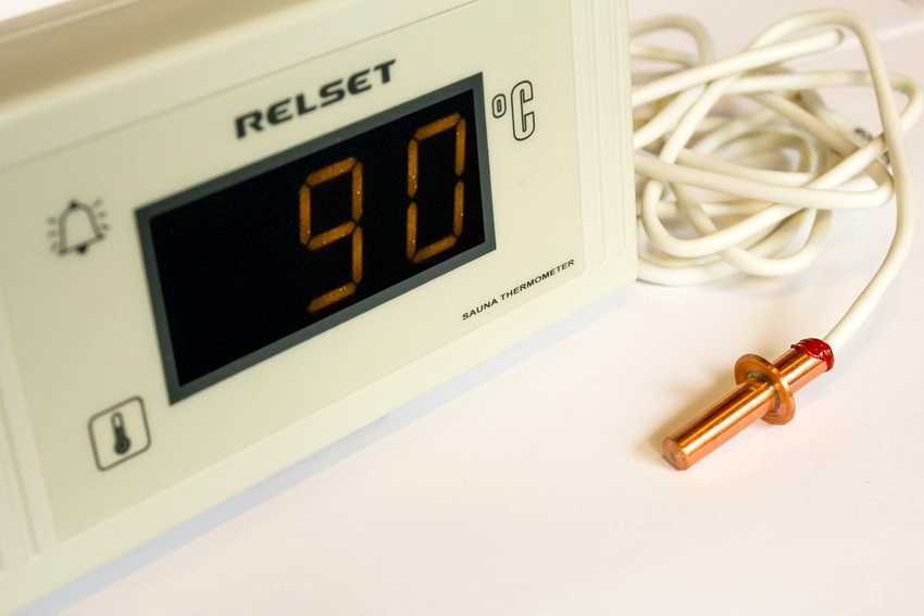 в случае с выносным датчиком сам датчик устанавливается в парной, а термометр с показателями монтируется на входе – в комнате для отдыха или предбаннике; таким образом, температуру внутри помещения можно узнать еще на входе в баню;