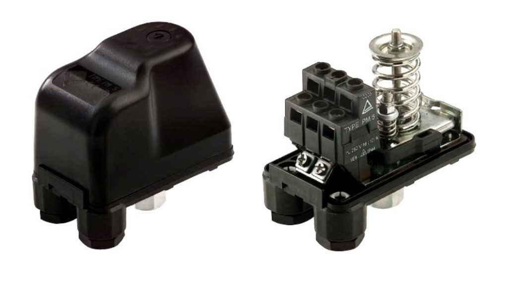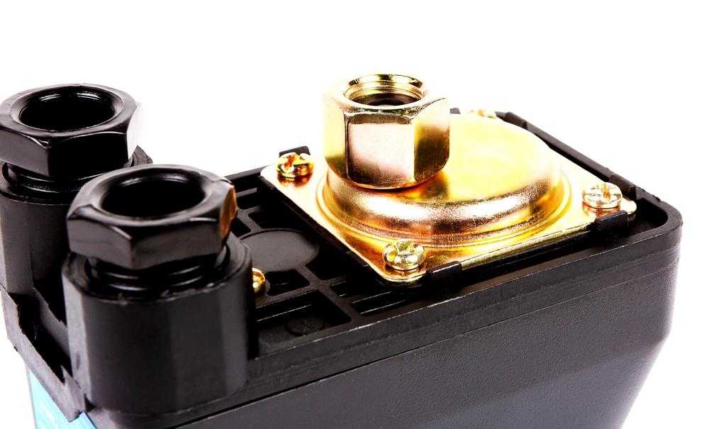 Достаточный уровень контроля обеспечивает реле давления. Оно представляет собой блок с пластиковым кожухом. Внутри корпуса находятся две пружины, каждая из которых «отвечает» за настройку значения крайнего положения (параметров включения и отключения насоса).