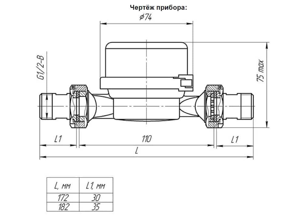 - Номинальный расход (Qn). При таком расходе водяной счетчик может работать непрерывно длительное время.