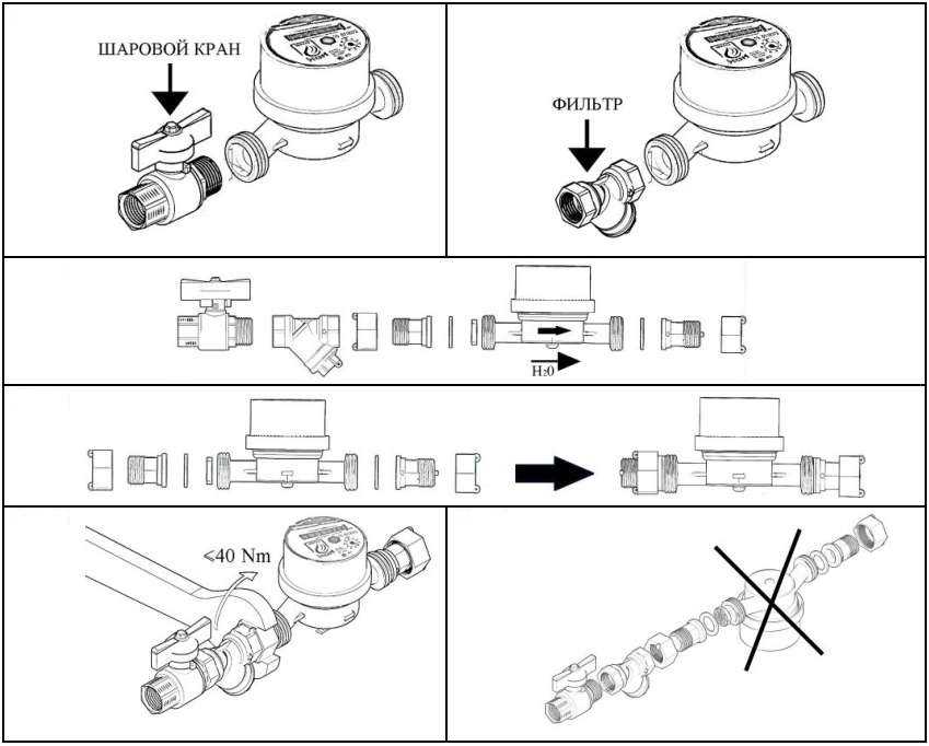 Несмотря на простые требования к установке прибора, описанные в руководстве пользователя, самостоятельно выполнять такую операцию не рекомендуется. Если необходимо собрать прибор или снять устройство для ремонта, то следует обращаться в компании, которые имеют разрешение на проведение таких работ. В этом случае будет минимизирован риск повреждения водосчётчика и его пломбы.
