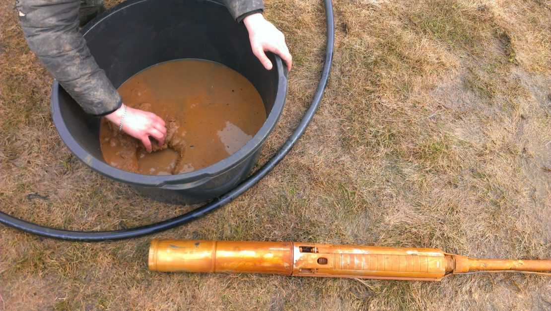 Потом трубу поднимают наверх. При этом шарик закупоривает ее, не позволяя «захваченным» загрязнениям вываливаться обратно. На поверхности земли желонка освобождается от частиц песка и снова опускается в скважину. Такую операцию повторяют несколько раз.